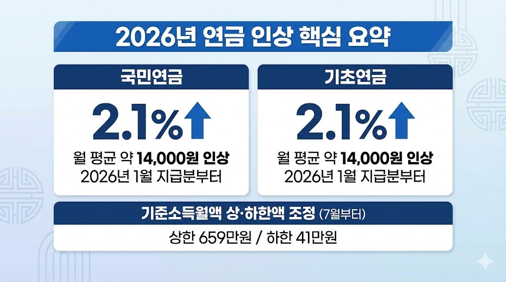 2. 2026년 연금 인상 핵심 요약 (2.1% UP)
